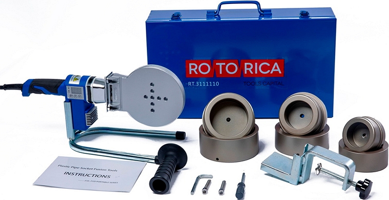 Паяльник для полипропиленовых труб Rotorica Rocket Welder 110 Blue серия Top (Роторика Рокет Велдер 110 Блю серия Топ) предназначен для раструбной сварки полипропиленовых (PP-R) труб и фитингов Ø до 110 мм.